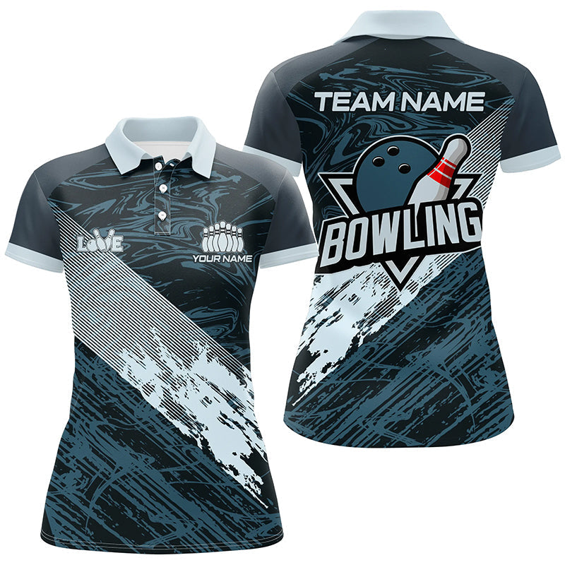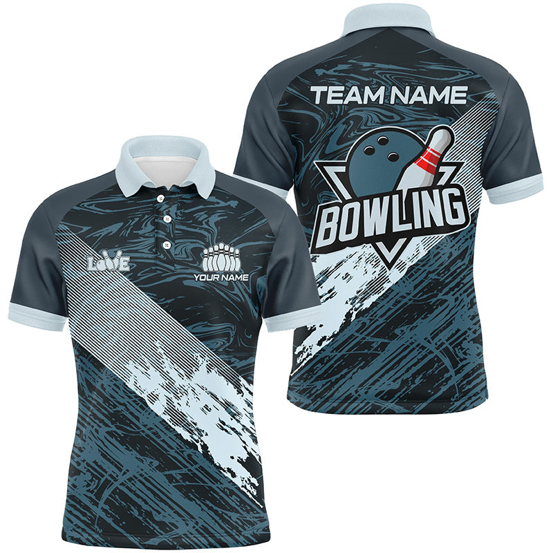 Maxcorners Blue Camo Bowling Ball And Pins Custom For Men Bowling Polo Shirts, Gift For Team Bowlers