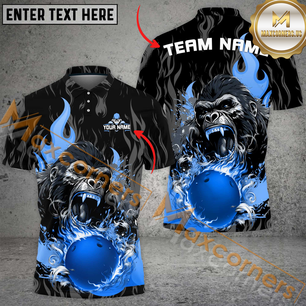 Maxcorners Custom Bowling Team Jersey, Fierce Gorilla With Blue Flaming Bowling Ball Name And Team Name