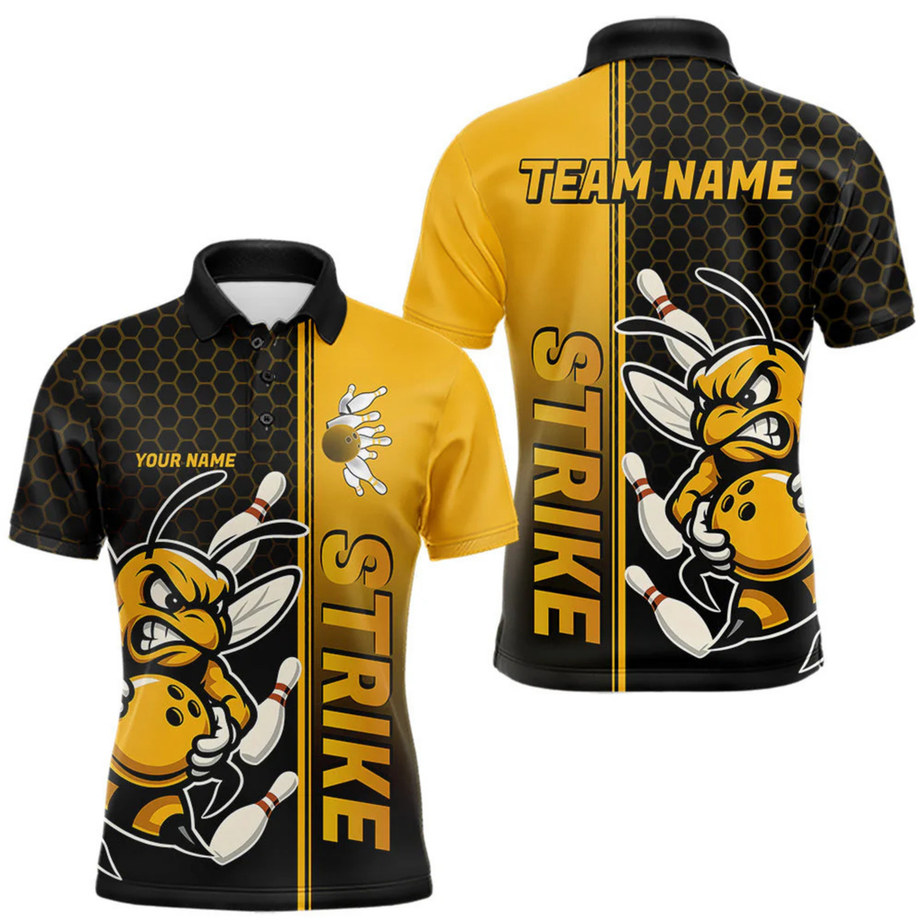 Maxcorners Custom Strike Bee Bowling Polo Shirts For Men, Bee Bowling Team Bowlers Outfit LM154