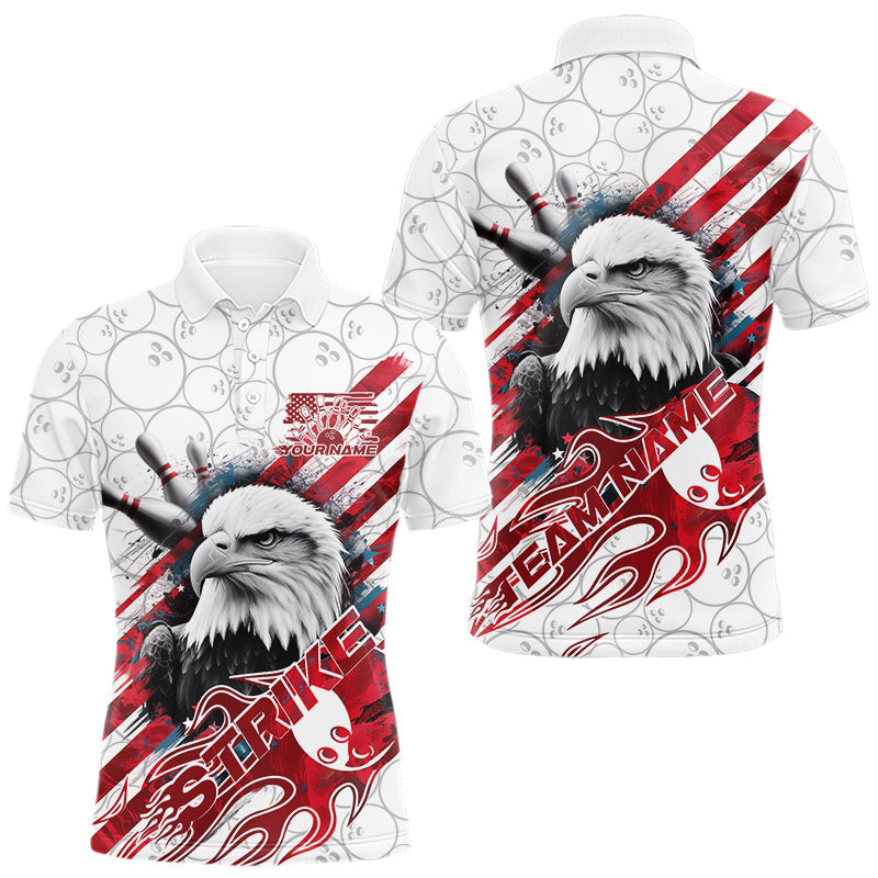Maxcorners Custom Patriotic Eagle Bowling Shirts For Men, US Flag Bowling League Team Shirt TU1407