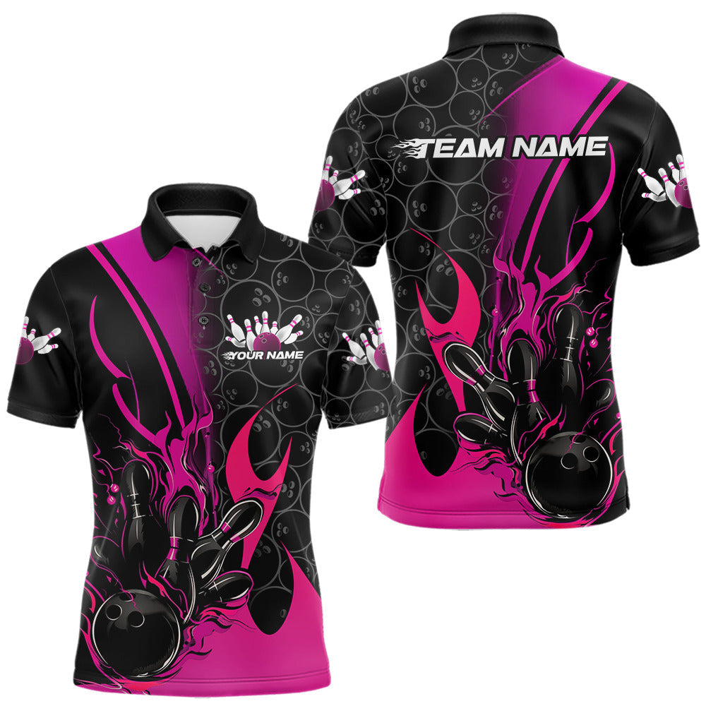 Maxcorners Custom Pink Flame Bowling Pattern Bowling Men Polo Shirt, Bowling Team League Shirt TU1609