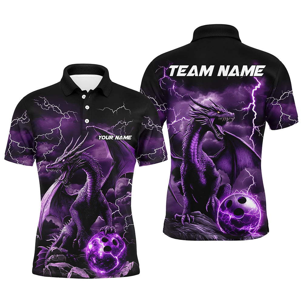 Maxcorners Black And Purple Thunder Lightning Custom Dragon Bowling Team Shirts For Men, Bowling Uniform
