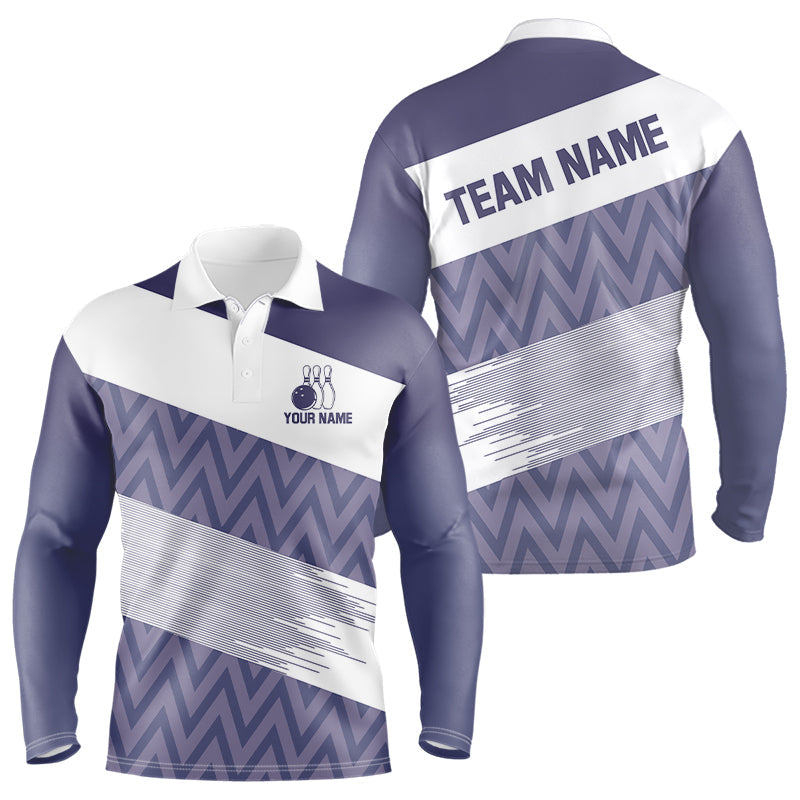 Maxcorners Purple And White Camo Bowling Polo, Quarter Zip Shirt For Men Custom Bowling Team Jersey Bowler Outfit