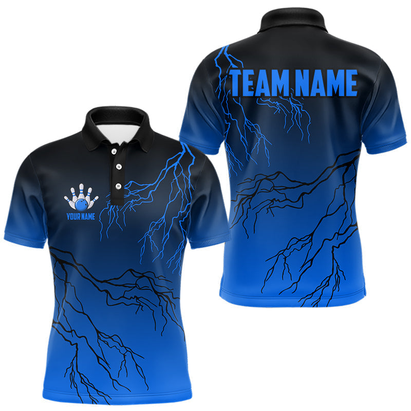 Maxcorners Black and Blue gradient Lightning thunder storm Bowling shirts for Men Custom Bowling Team Jerseys MT2306