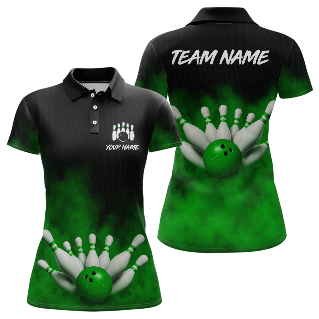 Maxcorners Green Smoke Bowling Shirts for Men Women Team Personalized Bowling Polo and Quarter Zip MT2108