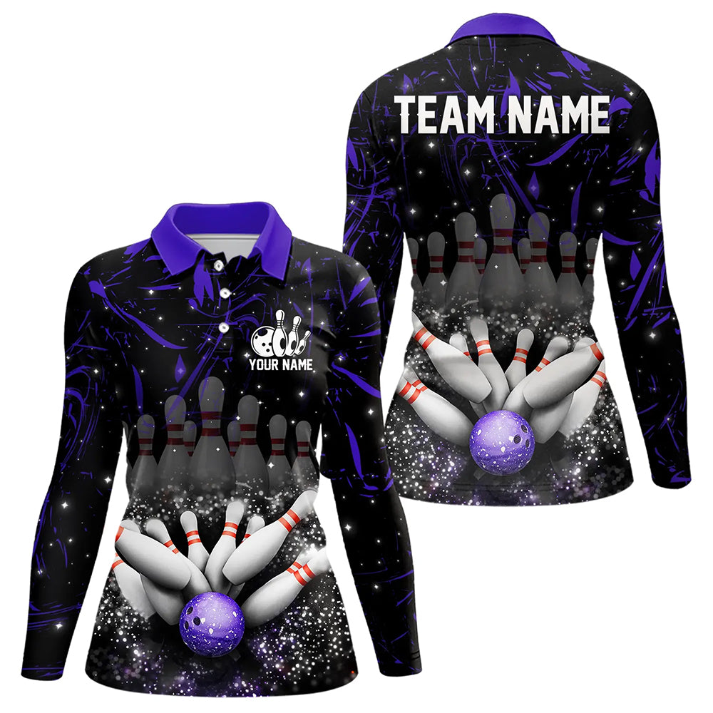 Maxcorners Personalized Black and Purple Camo Bowling Polo, Quarter Zip Shirts For Men Custom Bowling Team Jersey
