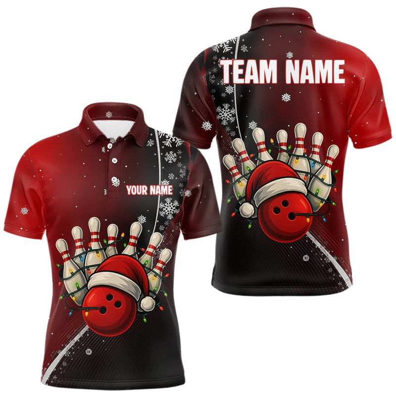 Maxcorners Custom Funny Christmas Bowling Shirts For Men, Black and Red Gradient Xmas Bowling Outfit Bowler Gift TU1609