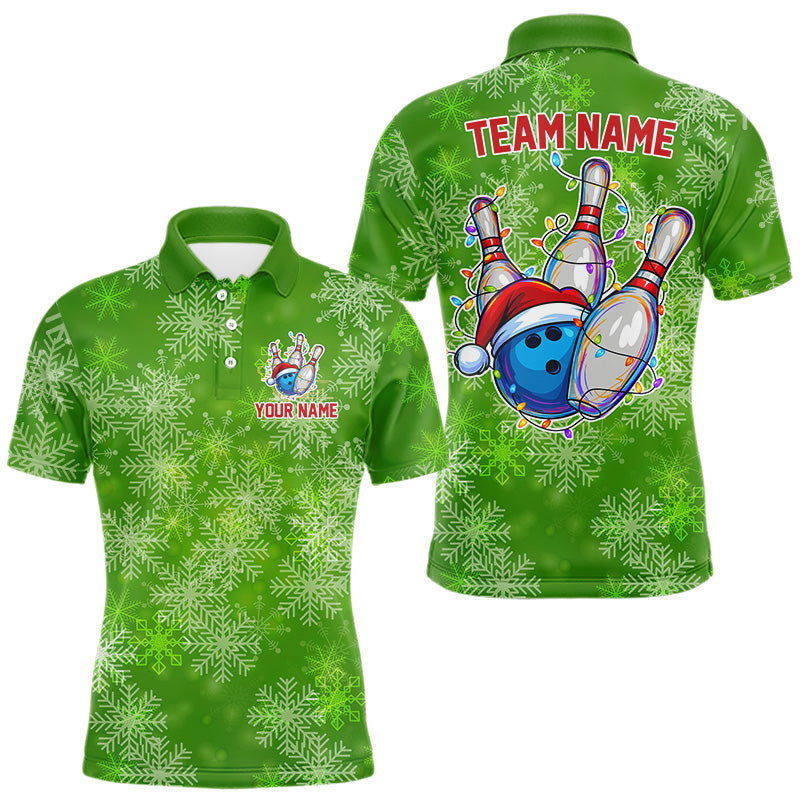 Maxcorners Personalized Funny Green Snowflake Christmas Bowling Team Shirts For Men, Christmas Bowling Gifts LM0910