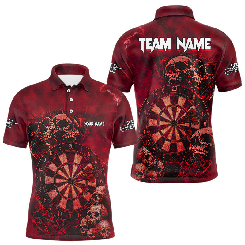Maxcorners Custom Grunge Red Dartboard Multi-Skull Dart Men Polo Shirt Dart Team Jerseys MT1110