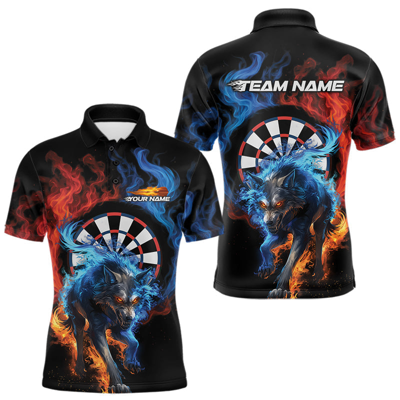 Maxcorners Custom Red And Blue Smoke Flame Wolf Dart Team Men Polo Shirts, Fire Dart Jerseys MT1110