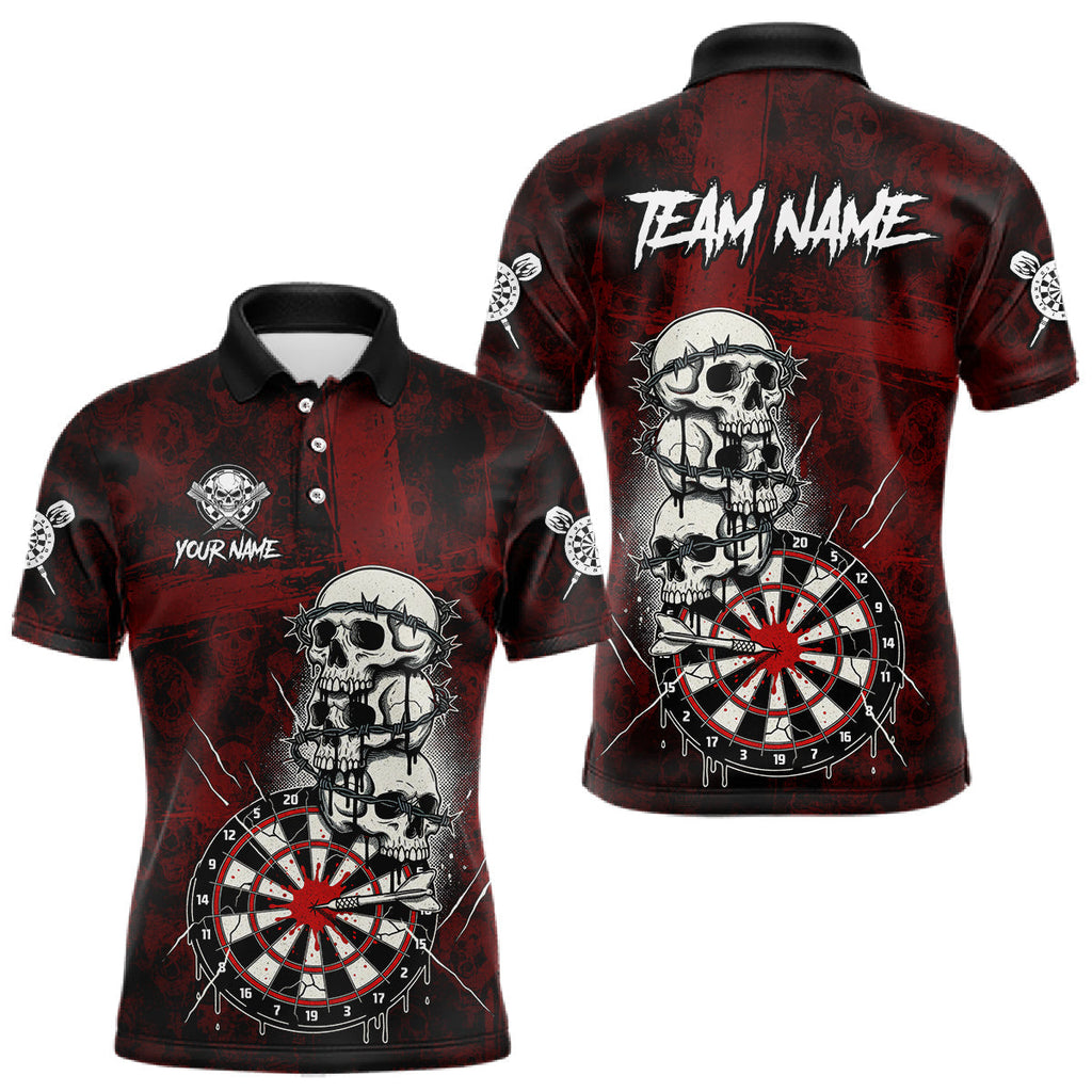 Maxcorners Custom Red Grunge Barbed Wire Grey Skull Dartboard Men Darts Polo Shirt Dart Jerseys TU1711