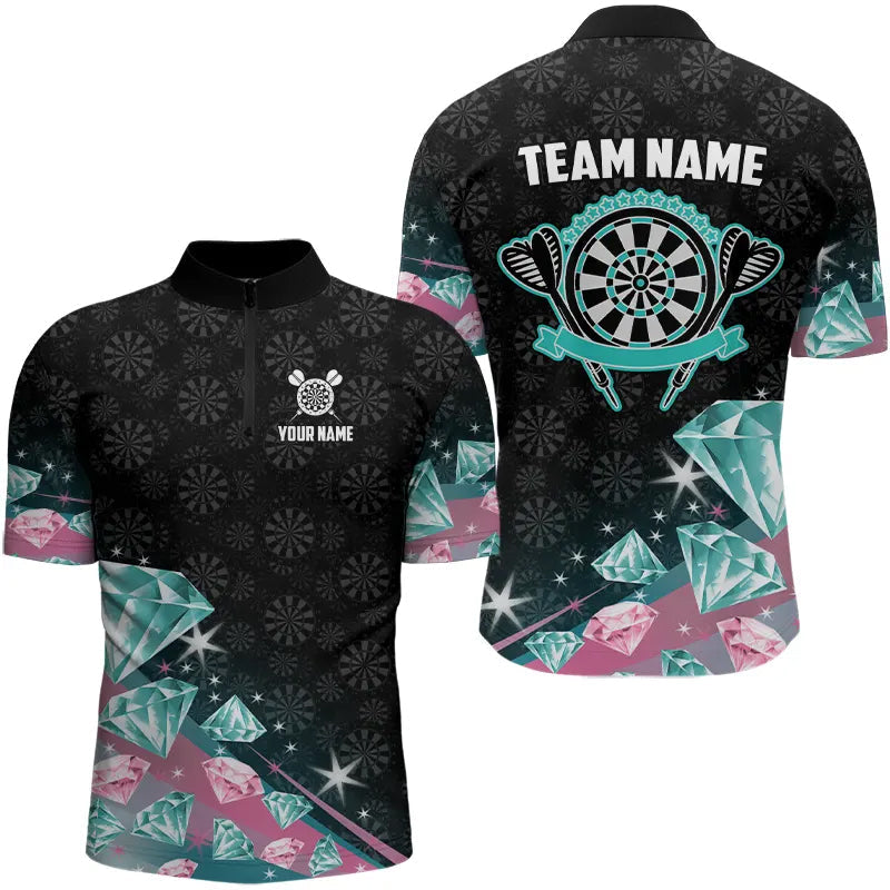 Maxcorners Funny Pink And Turquoise Diamonds Darts Polo & Quarter Zip Custom Dart Shirts For Men Dart Jerseys