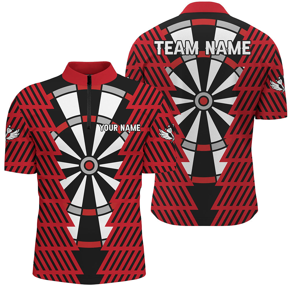 Maxcorners Striking Black And Red Dartboard Pattern Custom Dart Shirts For Men Best Darts Team Jerseys
