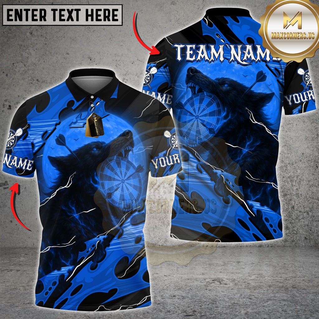 Maxcorners Darts Shirt Black Fire Wolf Moon Target Design Multi Options Personalized Name, Team Name 3D Shirt