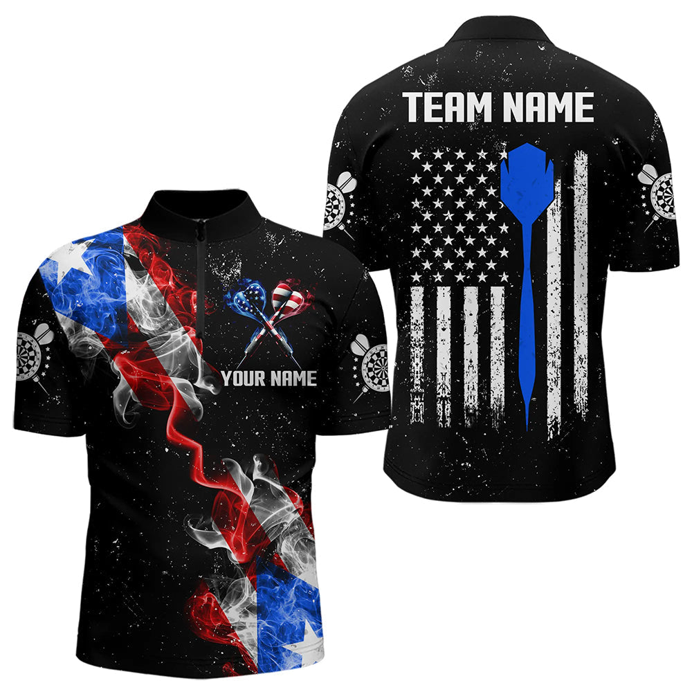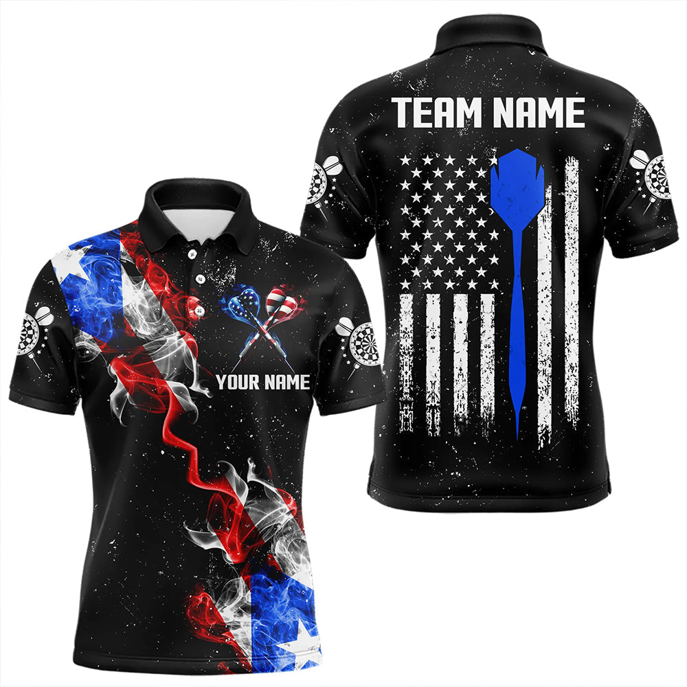 Maxcorners Customized Grunge Us Flag Smoke Darts Polo & Quarter-Zip Shirts, Patriotic Darts Jerseys For Men And Women
