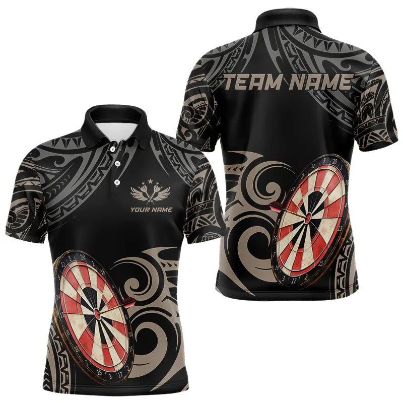 Maxcorners Personalized Black Tribal Pattern Darts Shirts For Men Custom Retro Team Darts Jerseys