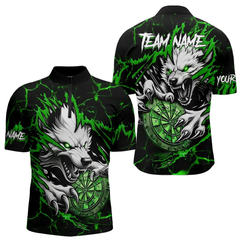 Maxcorners Personalized Wolf Lightning Darts Polo & Quarter Zip Custom Dart Shirts For Men Darts Jersey
