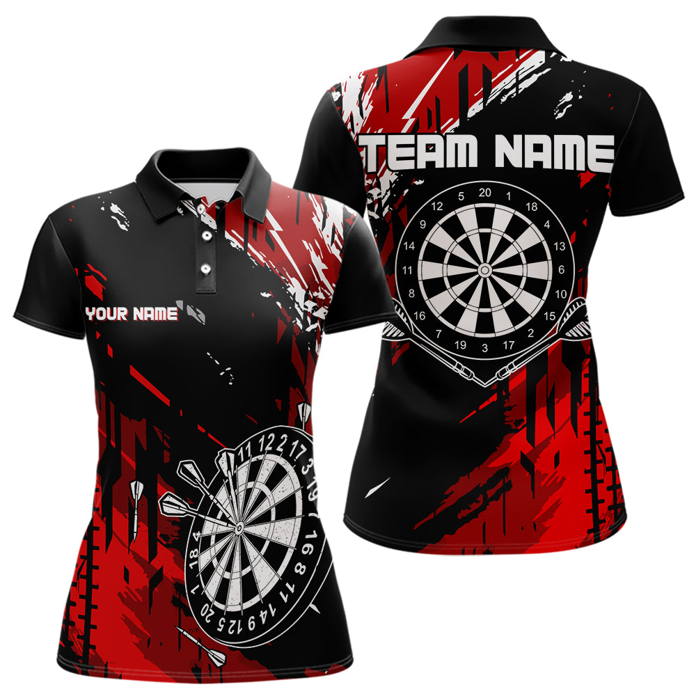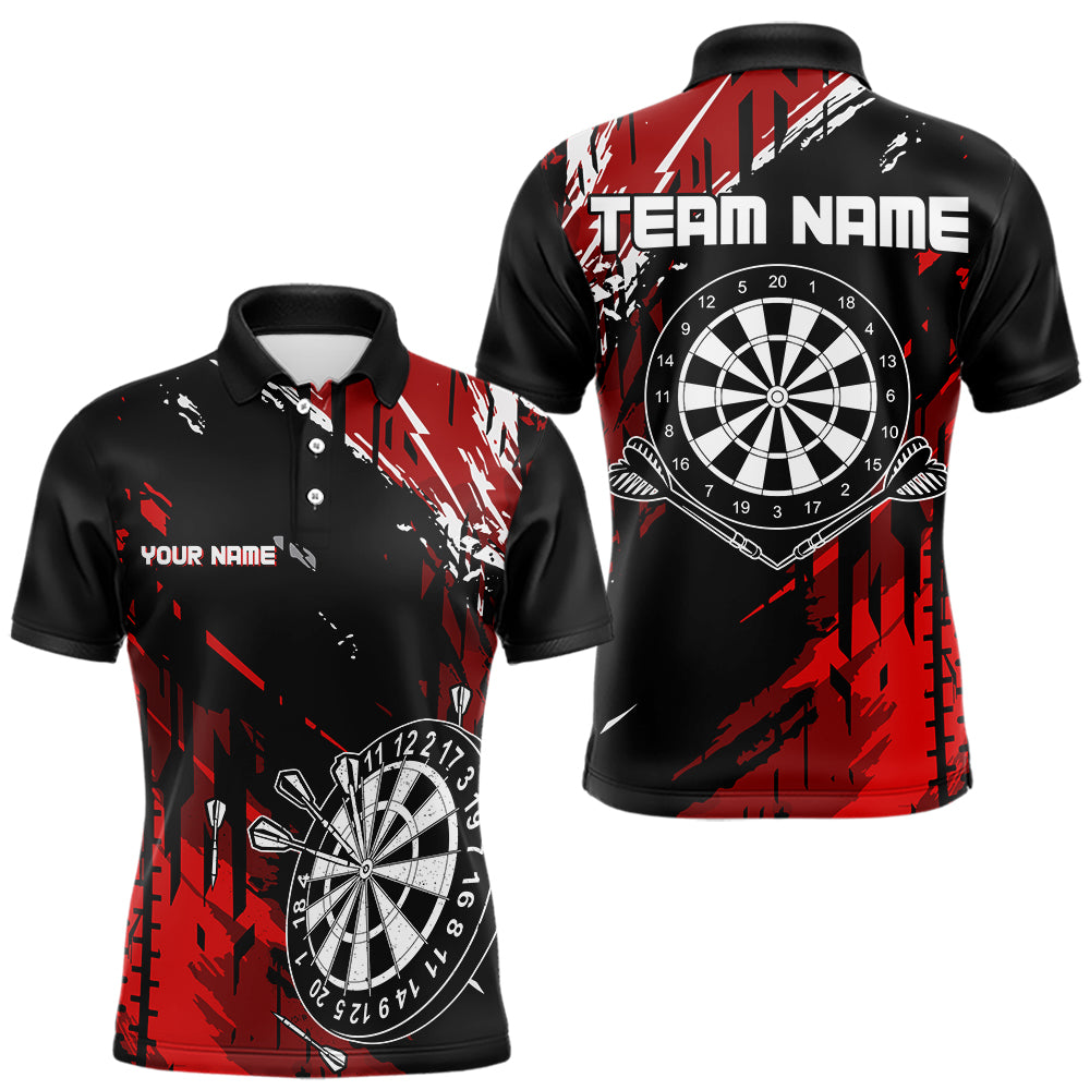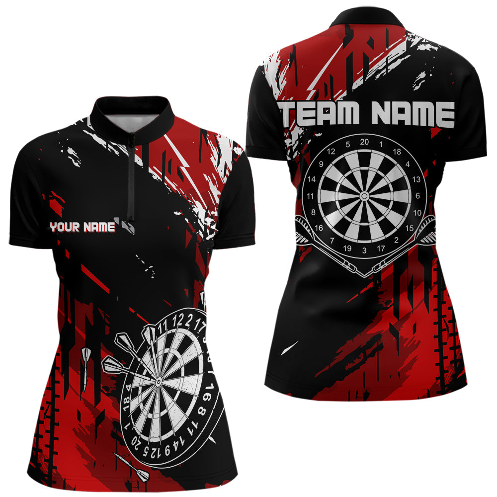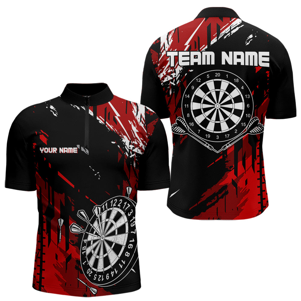 Maxcorners Retro Black Red Pattern Custom Darts Polo, Quarter-Zip Shirts For For Men Dart Team Jerseys