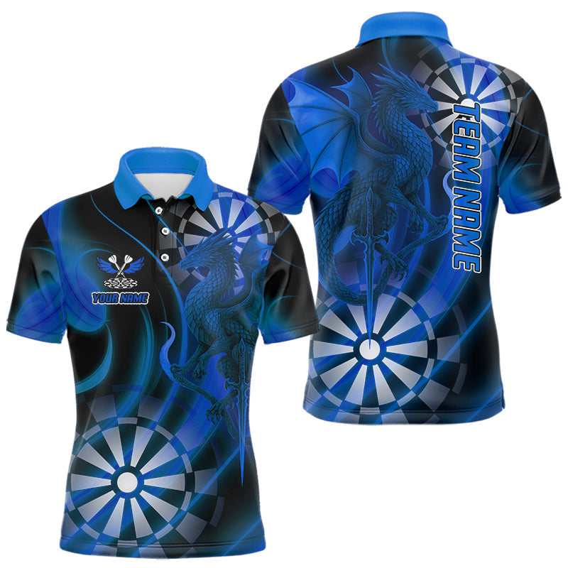 Maxcorners Azure Dragon & Dartboard Custom Darts Polo Shirt For Men - Darts Team Jersey TU0807