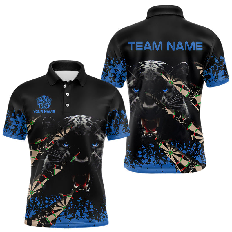 Maxcorners Black And Blue Grunge Panther Darts Shirt Polo & Quarter Zip For Men Custom Darts Team Jersey TU1108
