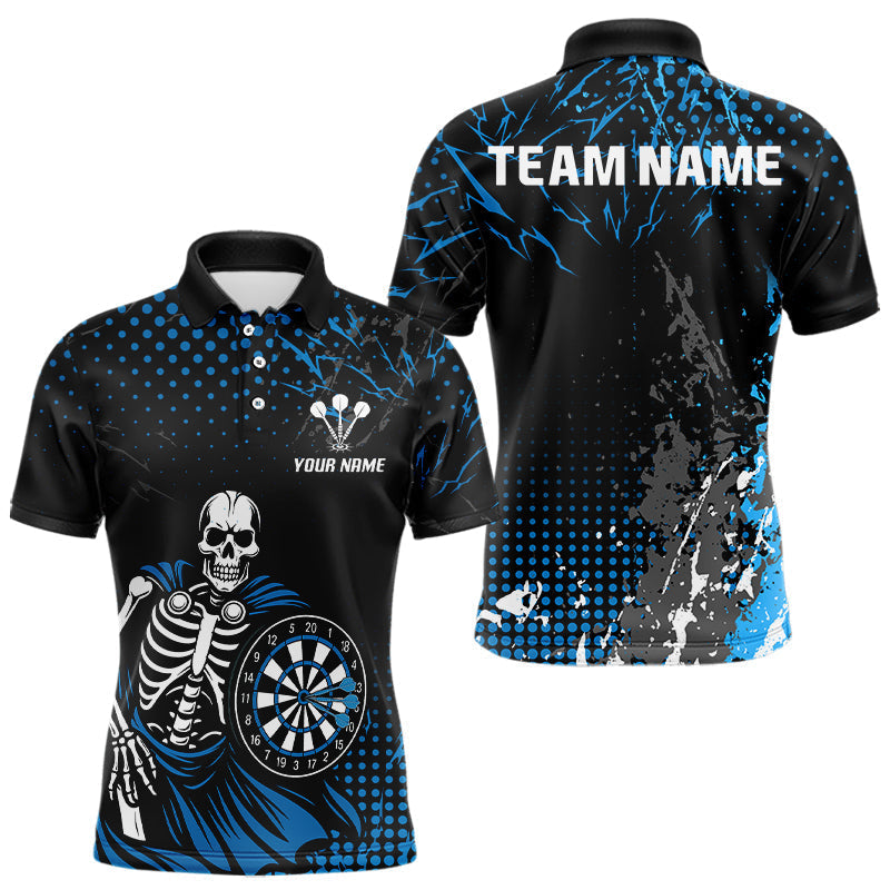 Maxcorners Black Blue Dartboard Skeleton Grunge Men's Darts Shirt - Custom Name For Players TU2606