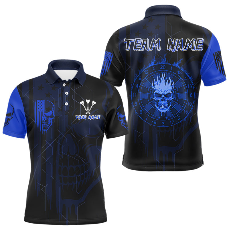 Maxcorners Custom Darts Team Polo Shirt For Men Blue Flame Dartboard - Darts Jersey TU0807