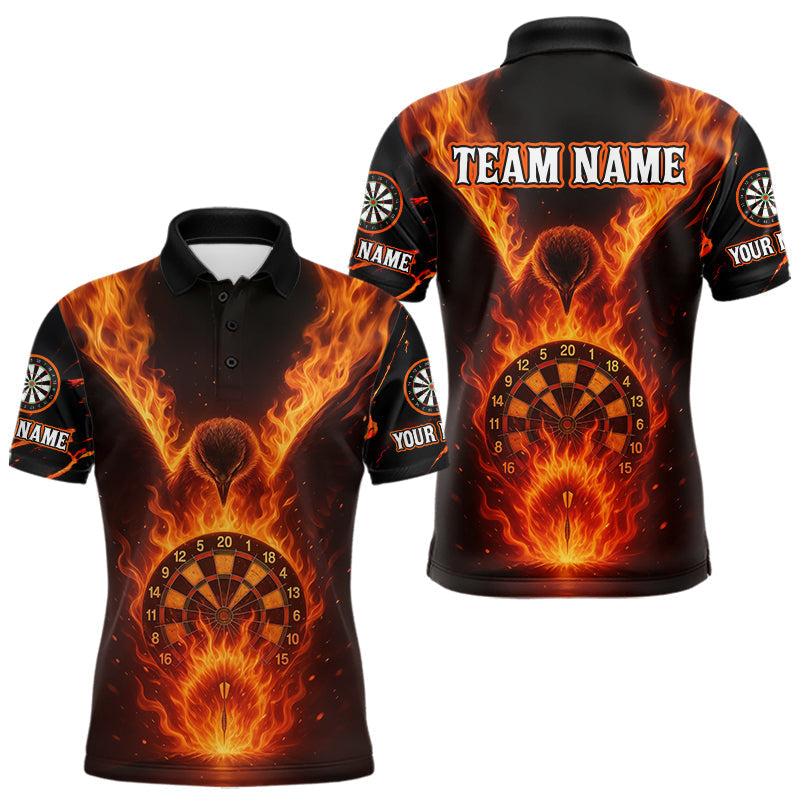 Maxcorners Custom Eagle Flaming Dartboard Men Dart Polo & 1/4-Zip Shirt, Darts Team Jersey