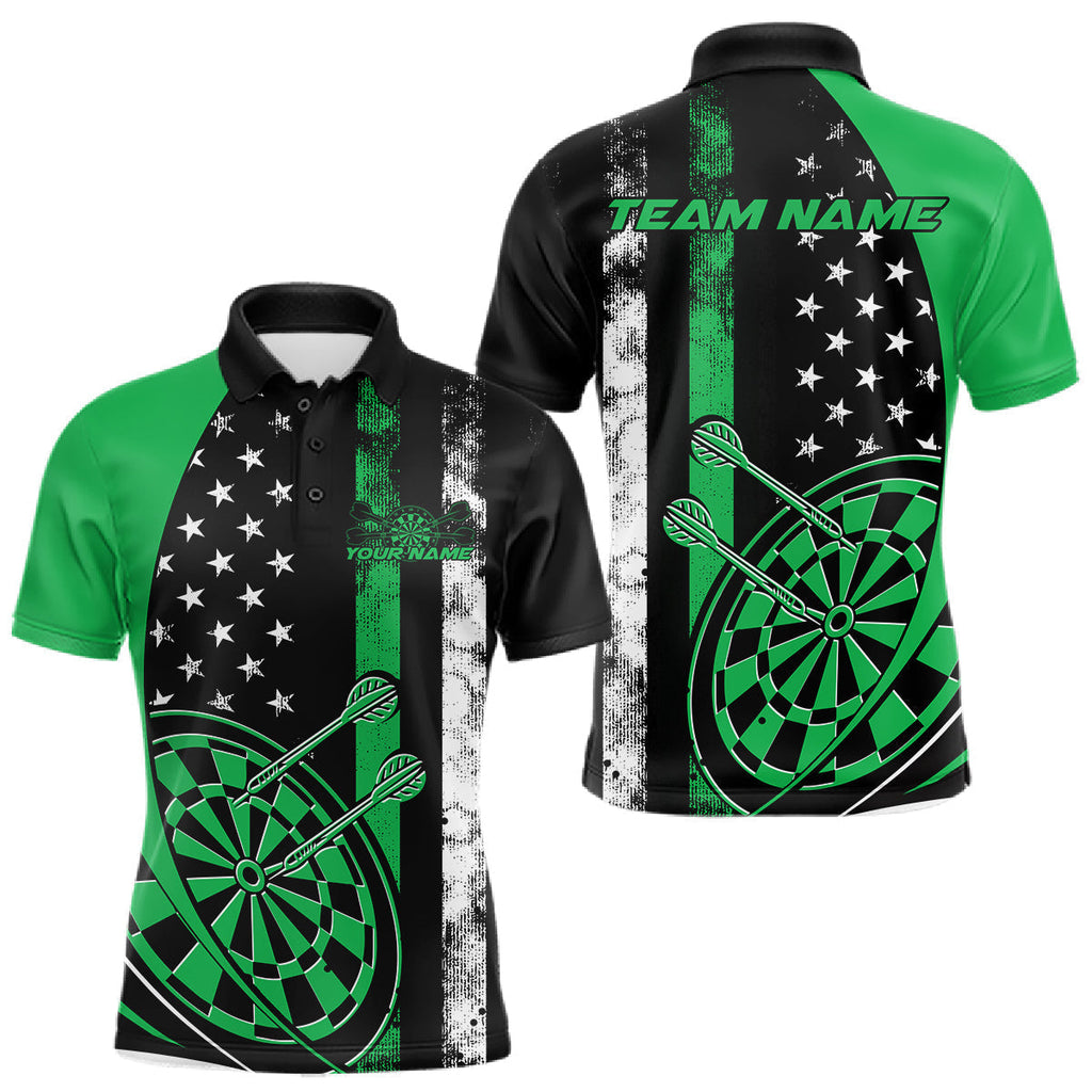 Maxcorners Custom Green Thin Line US Flag Patriotic Dartboard Dart Men Polo Team Shirts, Dart Jerseys TU1208