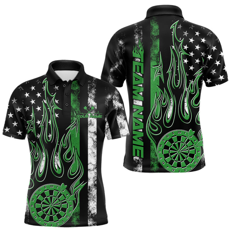 Maxcorners Custom Green Thin Line US Flag Patriotic Flame Dartboard Dart Men Polo Shirts, Dart Jerseys TU1208