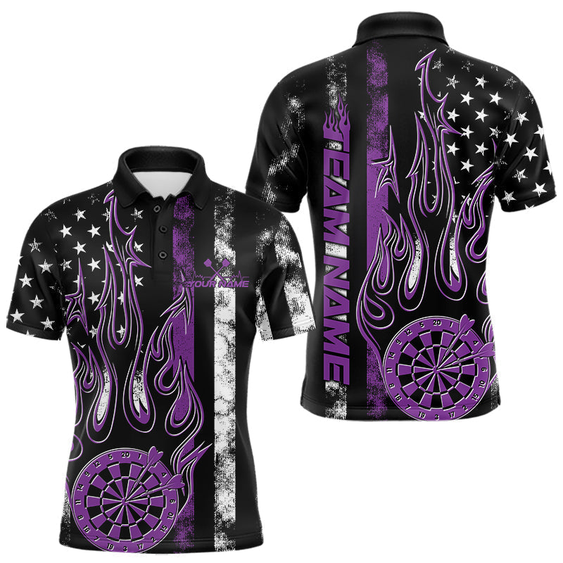Maxcorners Custom Purple Thin Line US Flag Patriotic Flame Dartboard Dart Men Polo Shirts, Dart Jersey TU1208