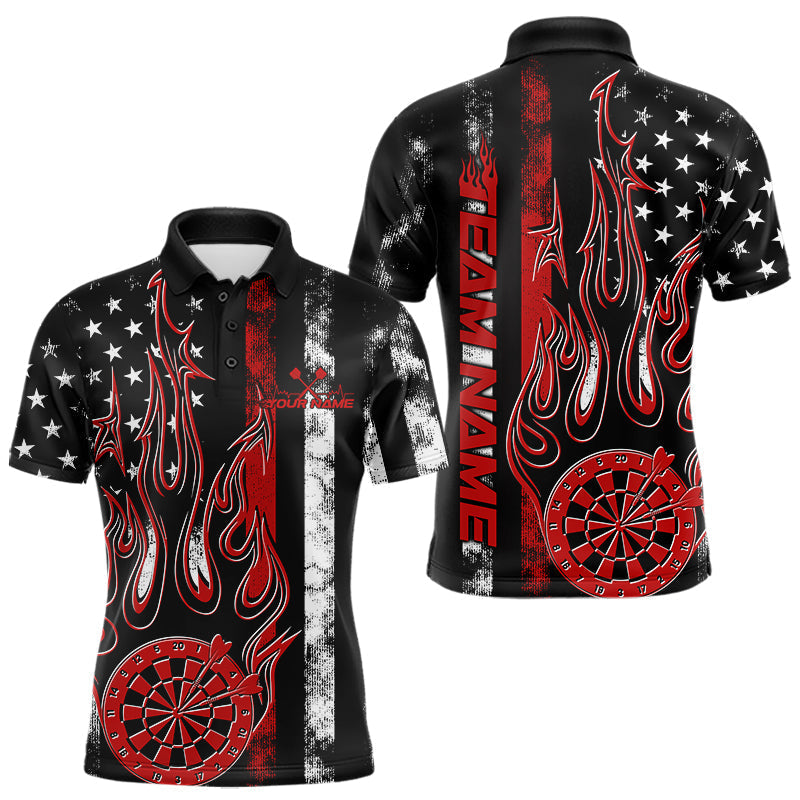 Maxcorners Custom Red Thin Line US Flag Patriotic Flame Dartboard Dart Men Polo Shirts, Dart Jerseys TU1208