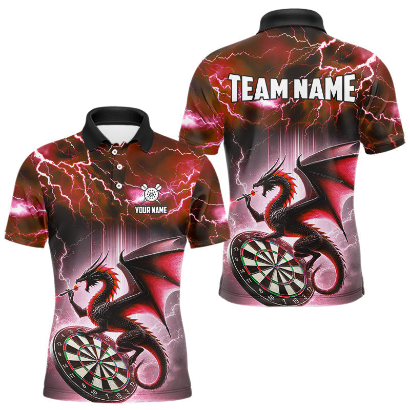 Maxcorners Custom Red Thunder Lightning Dragon Darts Shirt For Men, Darts League Jersey Polo & 1/4 Zip TU1407