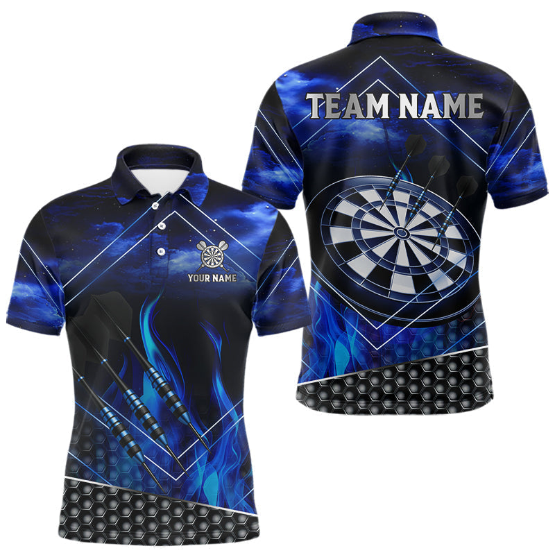 Maxcorners Flaming Dartboard & Dart Arrows Blue Darts Shirt For Men - Custom Name & Team Jersey TU0107