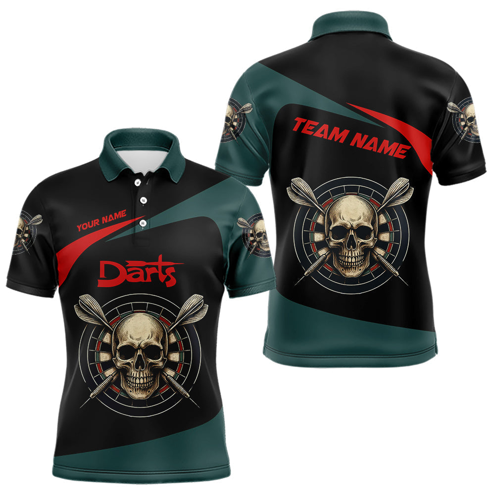 Maxcorners Grunge Skull And Dartboard Custom Polo Darts Shirt For Men - Darts Team Jersey TU0807