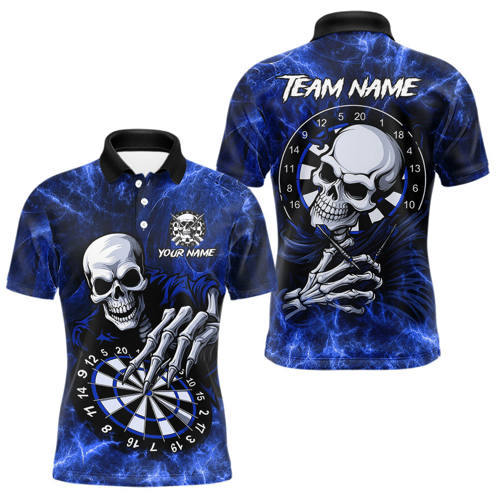 Maxcorners Personalized Blue Funny Skeleton Darts Shirt For Men Custom Skull Darts League Team Jersey TU1407