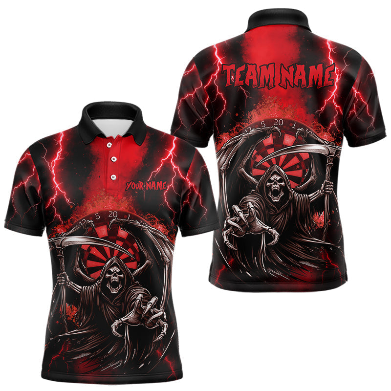 Maxcorners Personalized Red Grim Reaper Thunder Lightning Darts Shirt For Men, 3D Darts Team Jerseys TU1108