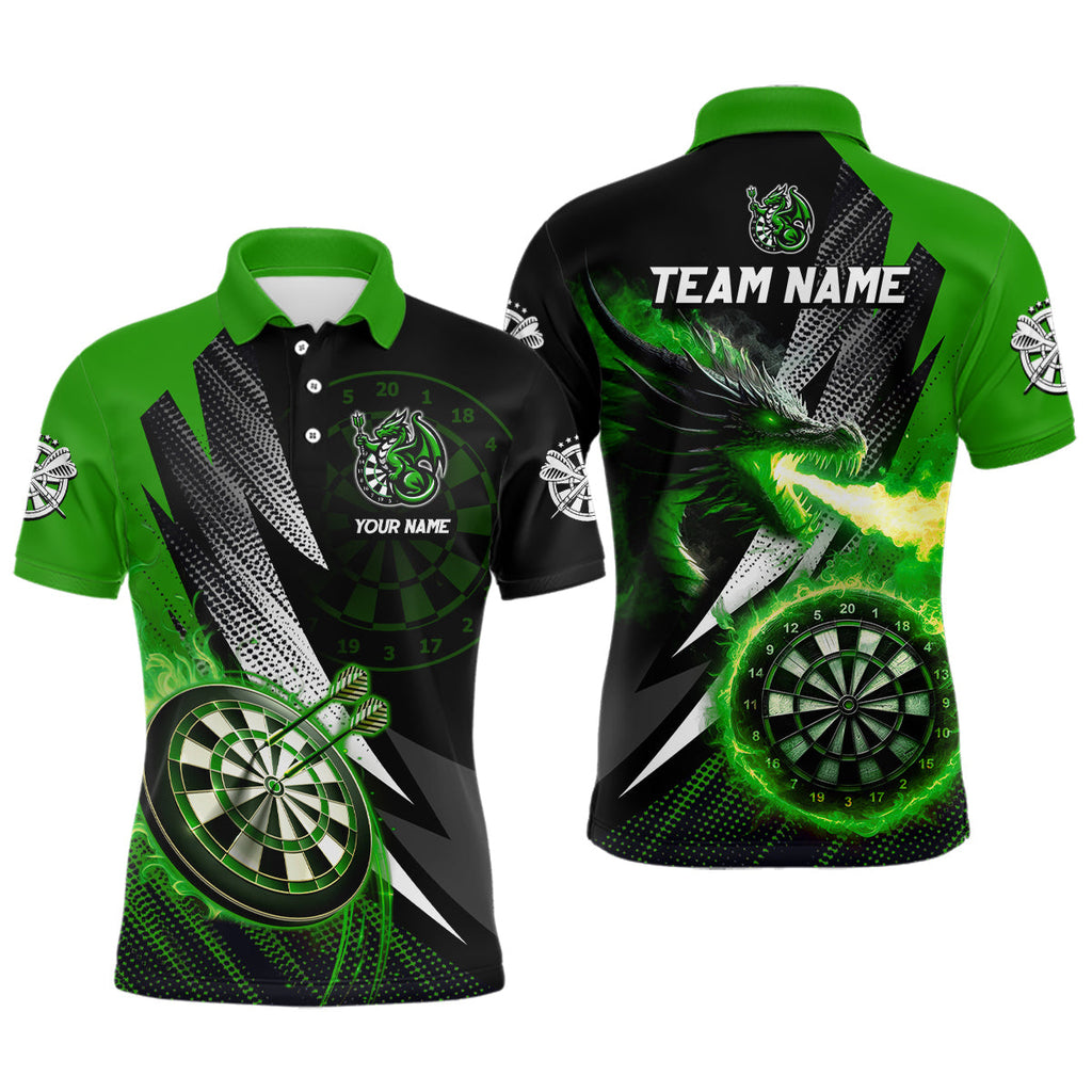 Maxcorners Personalized Striking Black And Green Flaming Dragon Dart Shirts For Men Custom Dart Team Jerseys TU0107