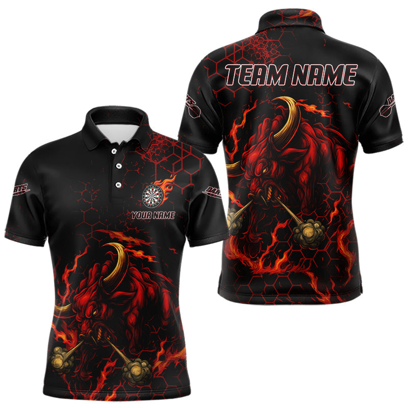 Maxcorners Red Hexagons Halftone Darts Custom Bull Darts Shirt For Men - Name & Team For Players TU2606