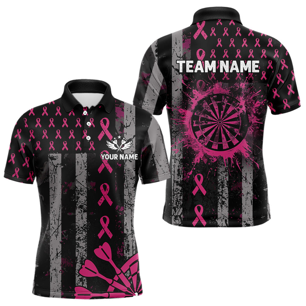 Maxcorners Personalized Grunge US Flag Pink Ribbon Patriotic Darts Shirt For Men, Breast Cancer Darts Jersey MT3107