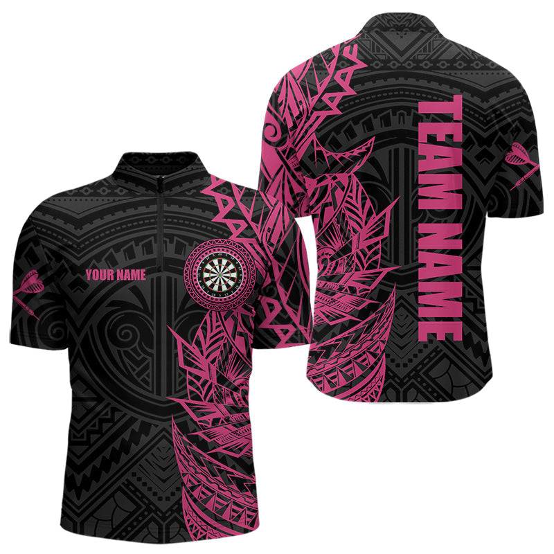 Maxcorners Personalized Pink Black Tribal Darts Polo & Quarter Zip Custom Dart Shirts For Men Dart Jerseys