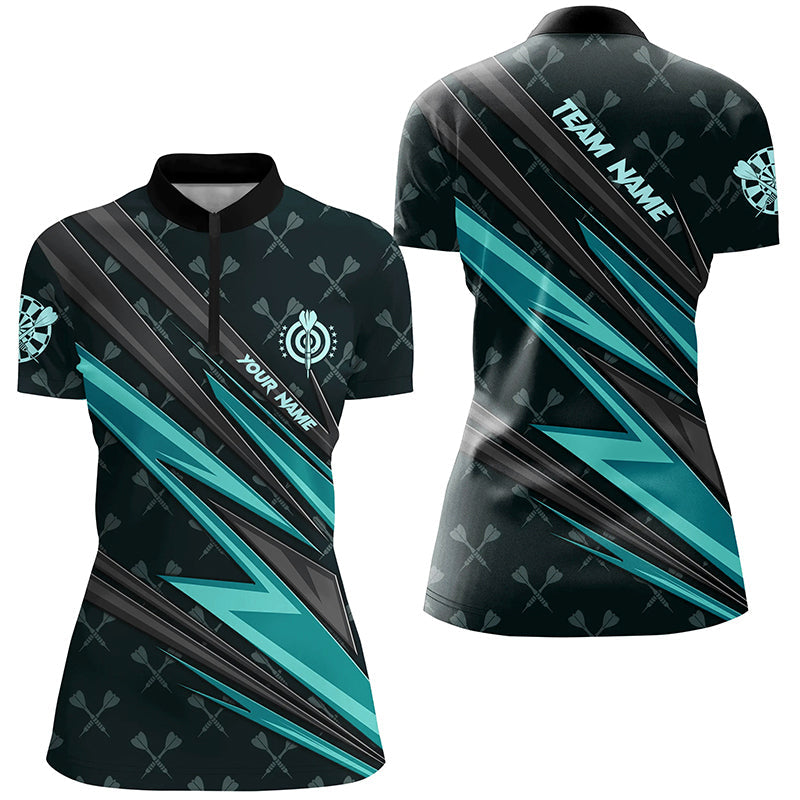 Maxcorners Personalized Turquoise Dart Jerseys Women Dart Polo & Quarter Zip Shirt Custom Team League Dart Shirt