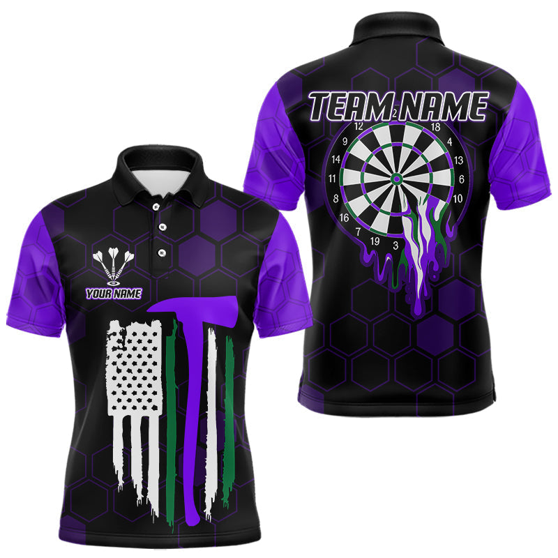 Maxcorners Purple Dripping Dartboard & US Flag Men's Darts Polo Shirt - Custom Name For Dart Players MT2407