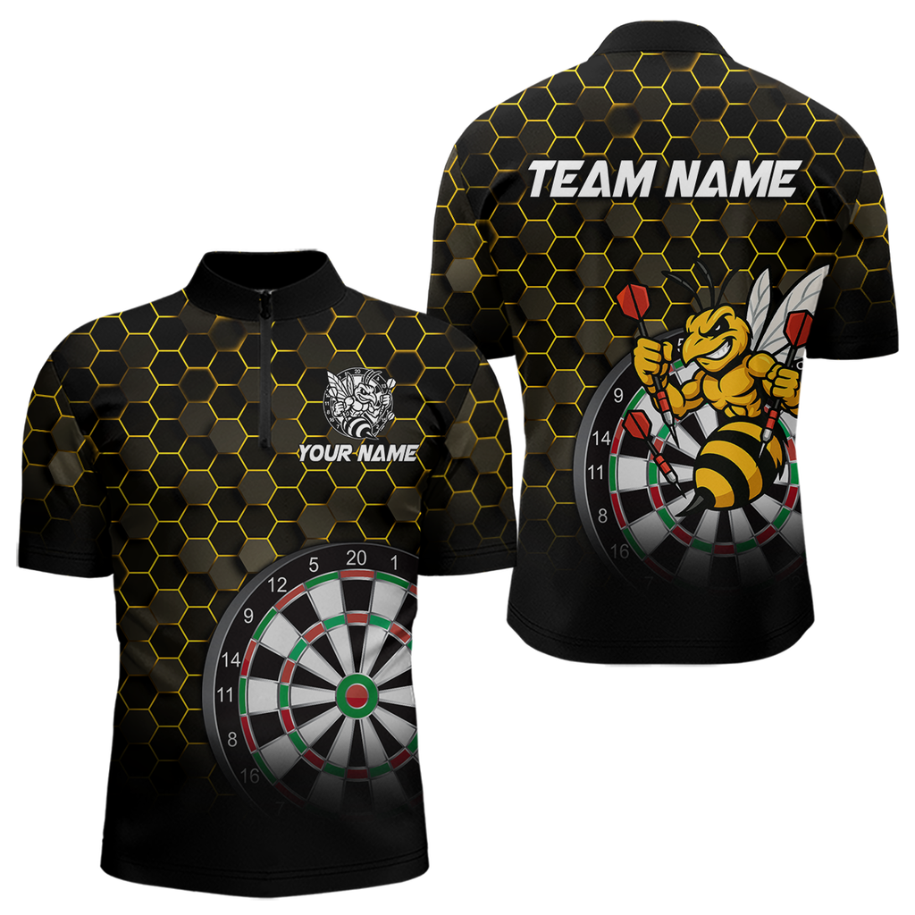 Maxcorners Funny Bee Hexagon Dart Shirts For Men– Custom Darts Team Polo & Quarter Zip Jerseys