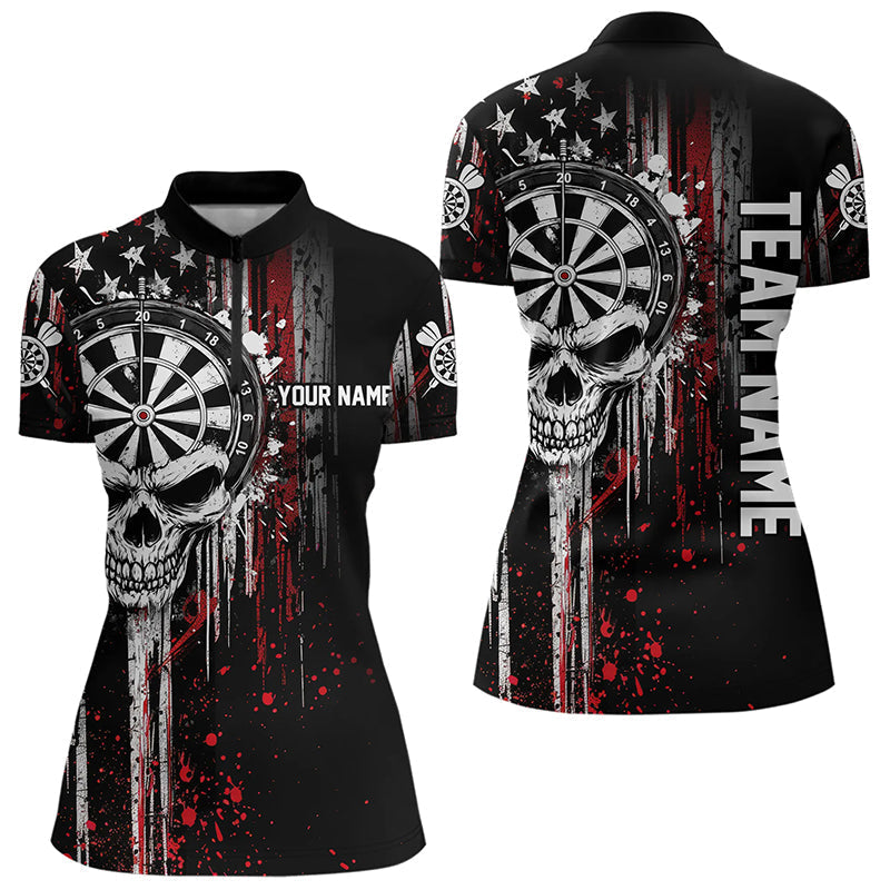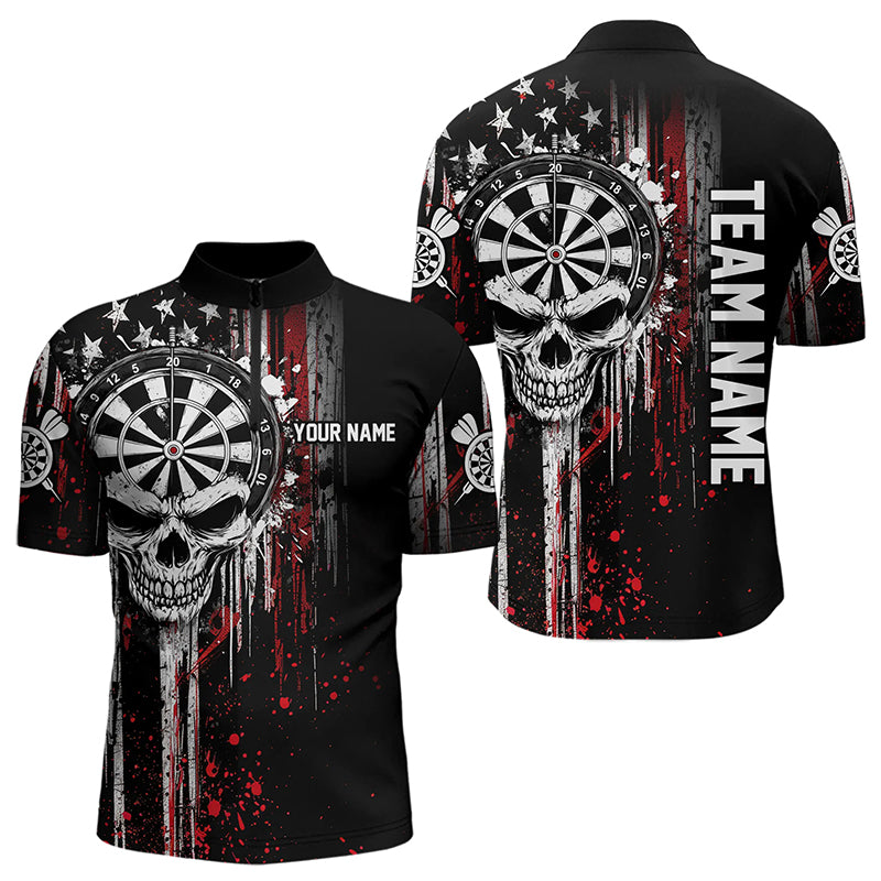 Maxcorners Retro American Flag Grunge Skull Darts Polo Custom Dart Shirts For Men And Women Darts Jerseys