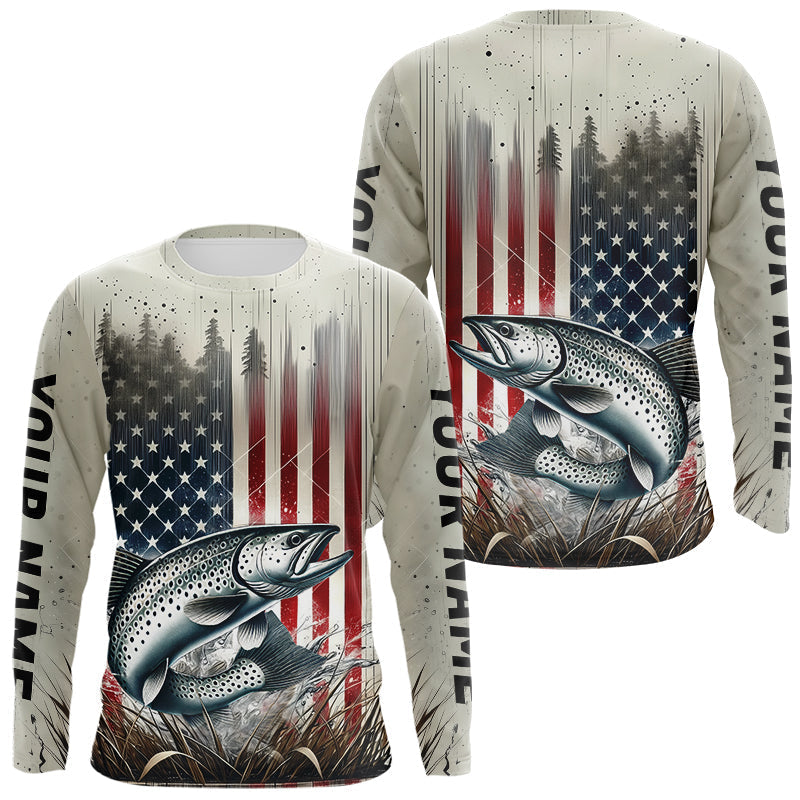 Maxcorners Custom Patriotic US Flag Speckled Trout Long Sleeve Fishing Shirts, Trout Fishing Jerseys LM0607