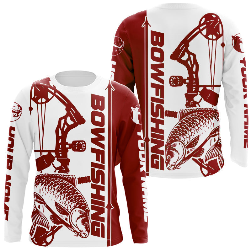 Maxcorners Custom Red And White Bowfishing Carp Long Sleeve Fishing Shirts, Carp Bow Fishing Shirt LM0607