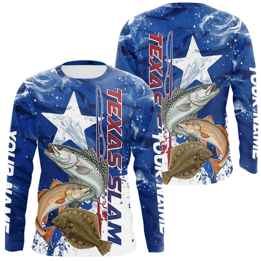 Maxcorners Custom Texas Slam Redish, Trout,Flounder Long Sleeve Performance Sun Protection Fishing Shirts LM0607