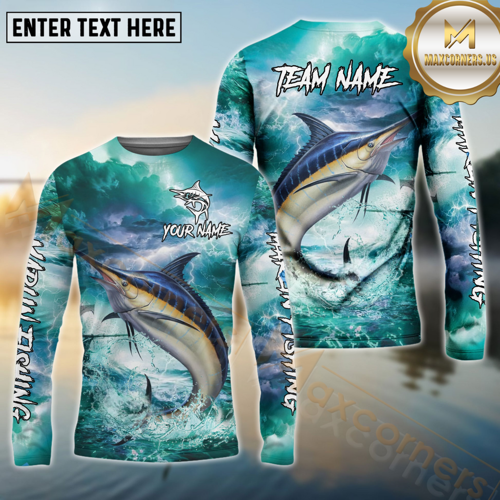 Maxcorners Marlin Fishing Storm Ocean Style Pattern Sport Jersey Personalized Name, Team Name Long Sleeve Shirt