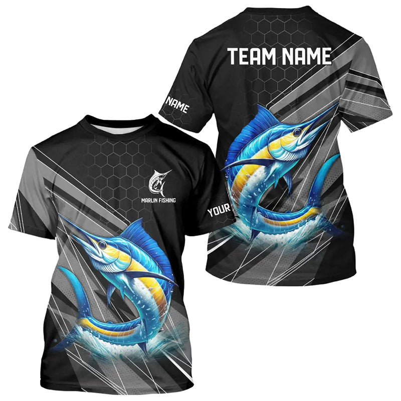 Maxcorners Personalized Black camo Marlin Fishing Jerseys, Marlin Long Sleeve Fishing Tournament Shirts LM0611
