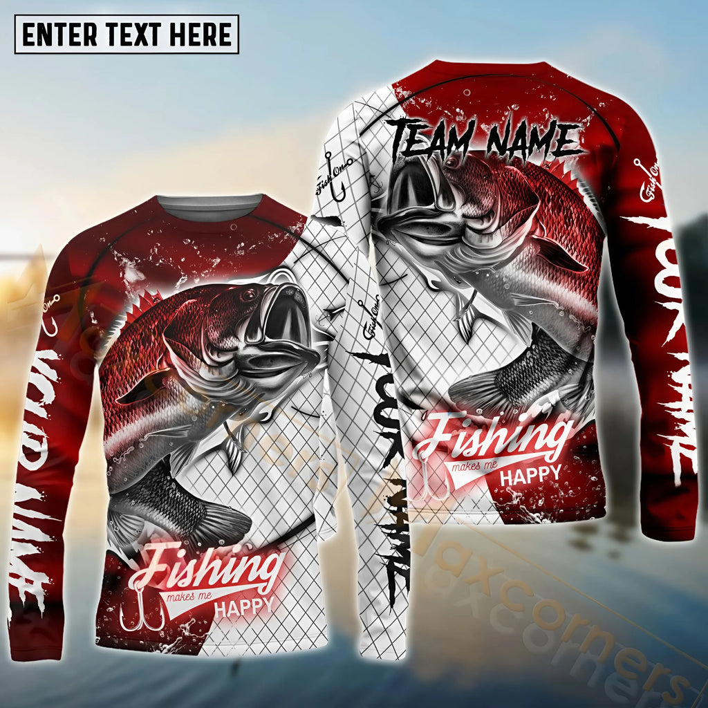 Maxcorners Bass Fishing Dark Red Skin Pattern Sport Custom Name & Team Name 3D Shirts